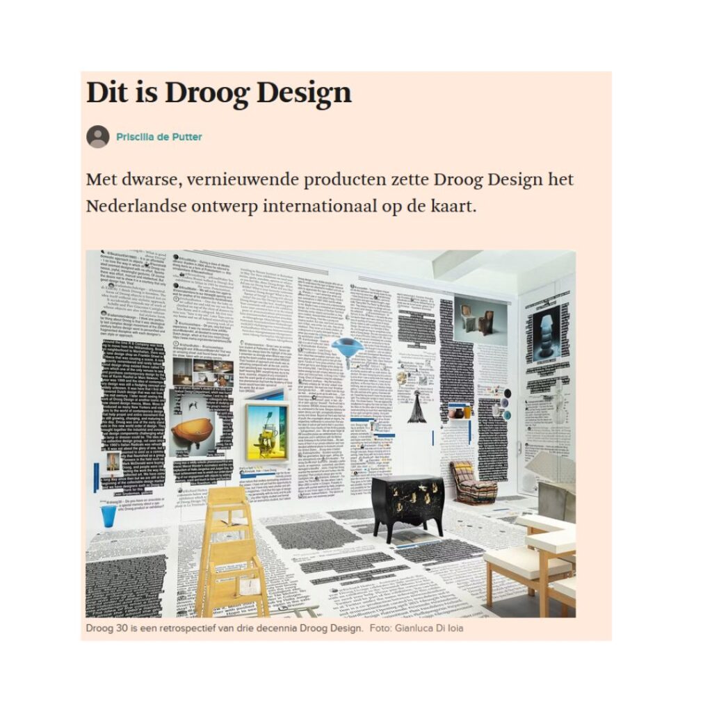 ‘Met dwarse, vernieuwende producten zette Droog Design het Nederlandse ontwerp internationaal op de kaart.’