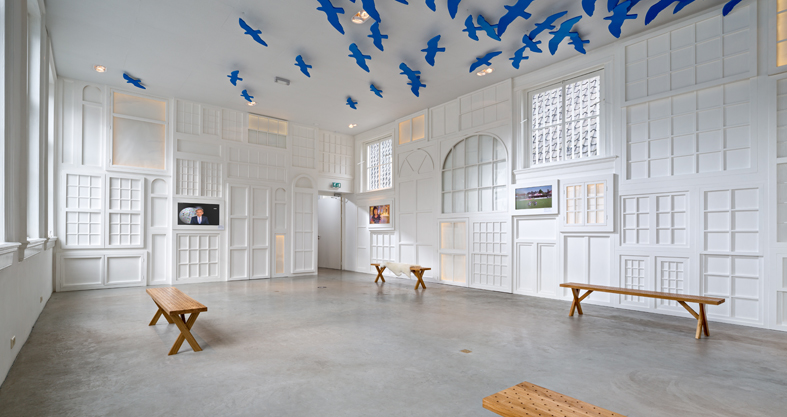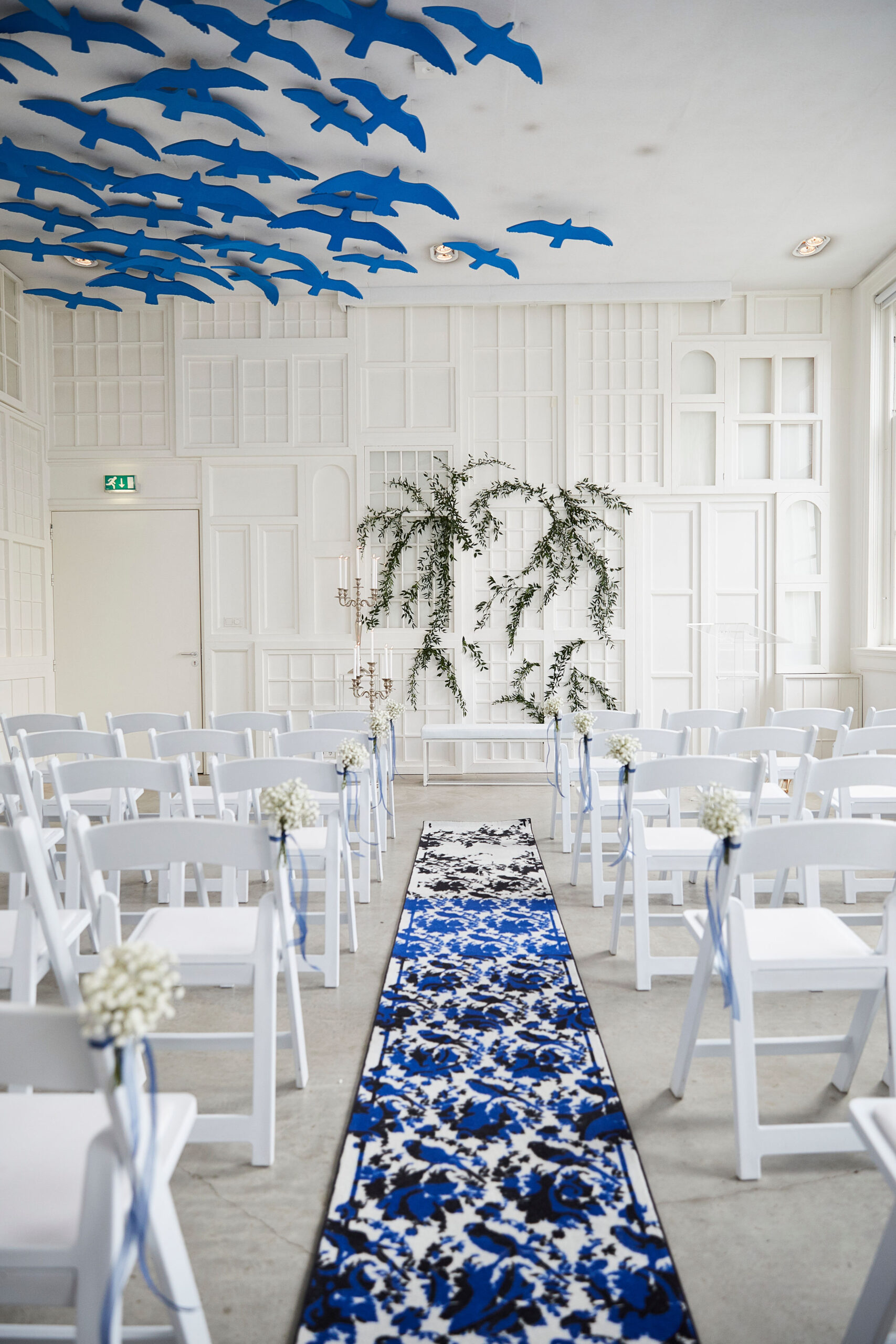 The White Space is a beautiful 75 sqm room decorated with flying birds and canal house window frames lit up by lights. The combination of these bright aesthetics and a large amount of natural light gives the room a spacious and calm feeling. The room is located on the first floor. The room is often booked for company meetings, press releases, product launches, archive sales, or private occasions and can accommodate a large variety of other events. The White Space @droog is a popular room for wedding celebrations because of its beautiful and romantic interior. The White Space can house 70 guests standing or 50 guests seated.